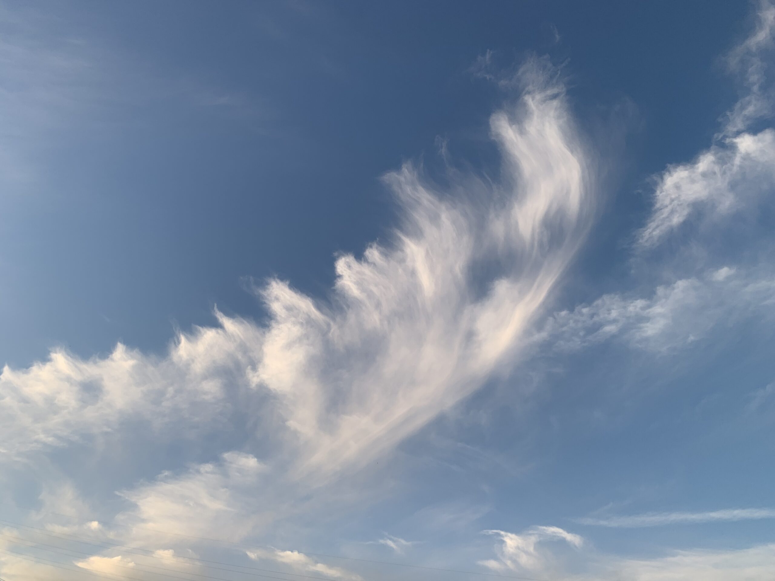 夕方、息吹を迎えに行く車の窓からいい雲が見えていた。