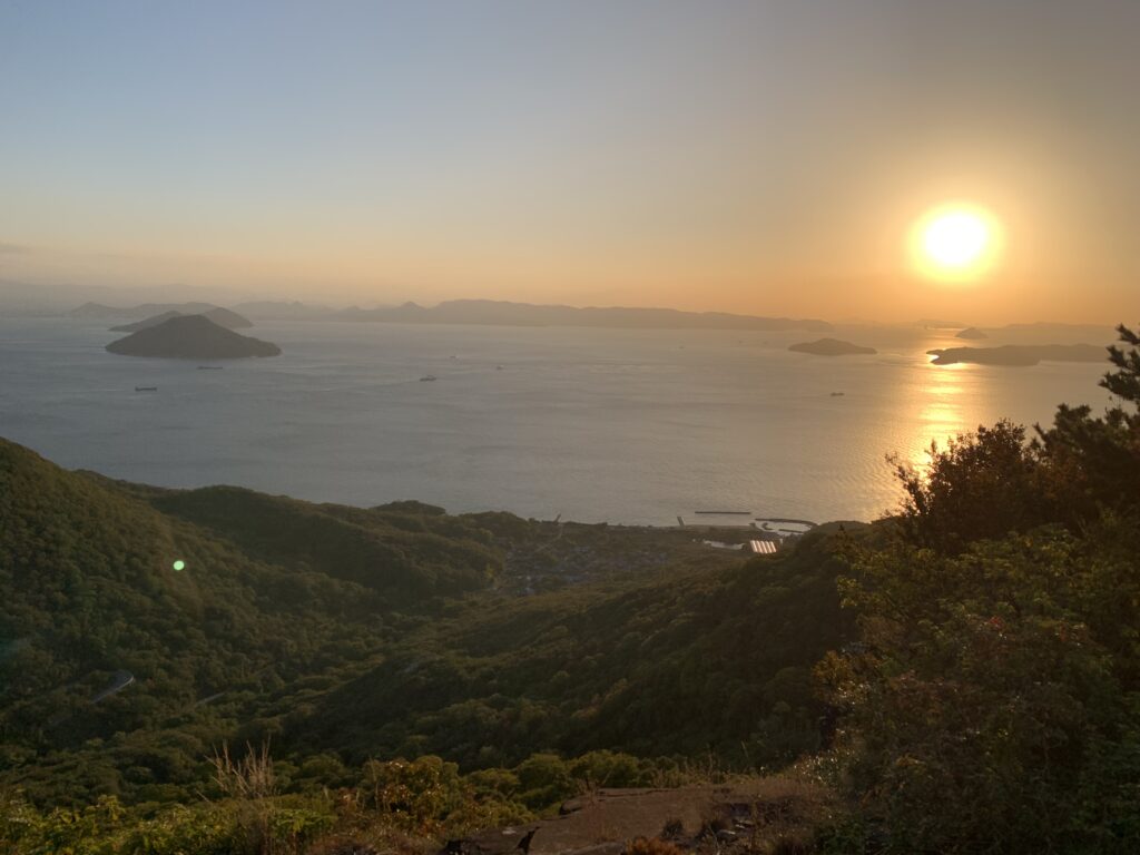 瀬戸内海の島々がポツポツと浮かび、それぞれが小宇宙を構成していて、とても美しい景色でした。